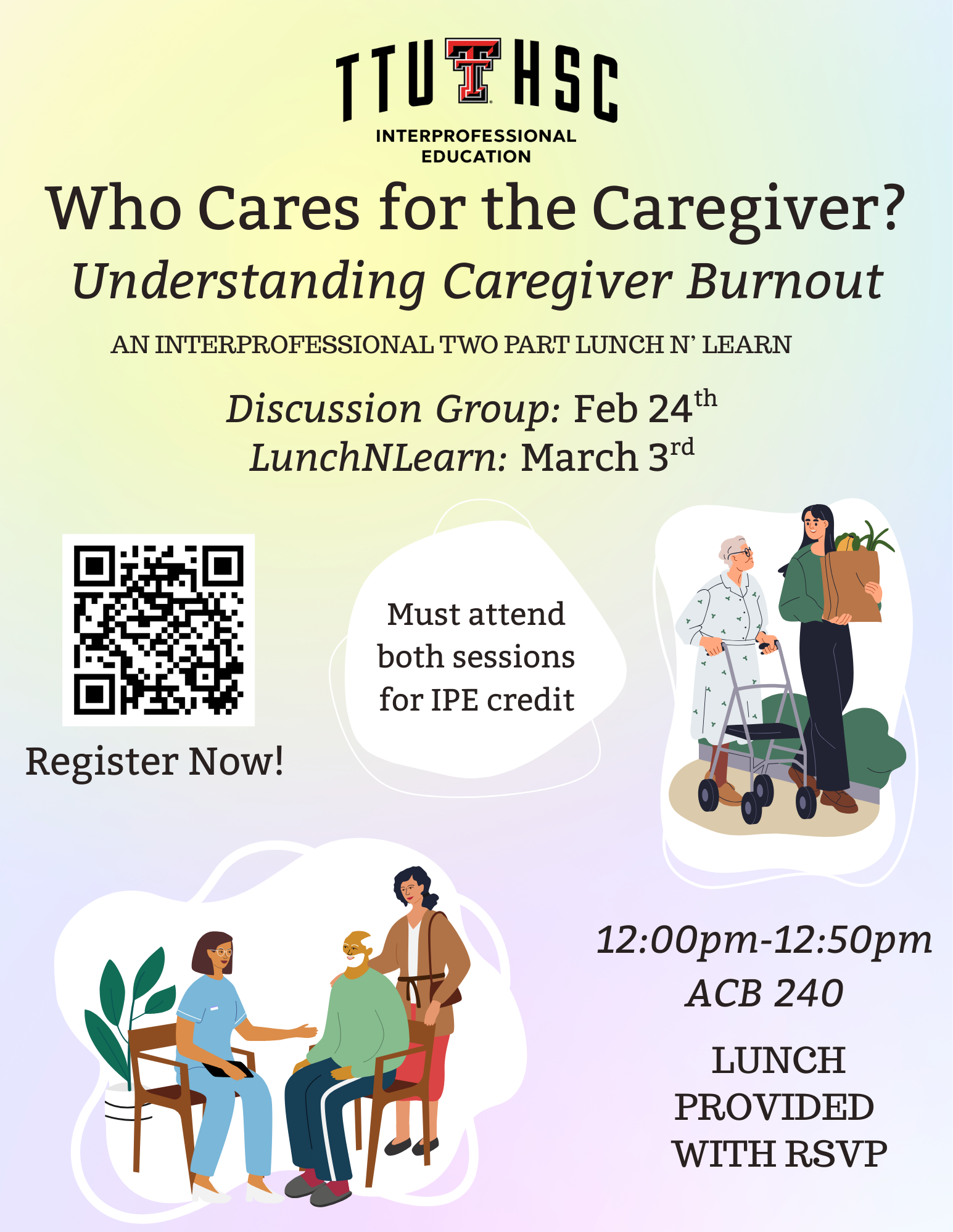 Listed below are upcoming interprofessional education events and activities open for registration. For more information, contact the IPE Office at (806) 743-2028, or email ipe@ttuhsc.edu. Upcoming Events: